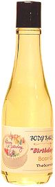 STEP #4 NOURISH: 80% Organic " Drench yourself from head to toe with sweet, decadent "Birthday Cake" Body Syrup. Made with unrefined organic Safflower Oil, unrefined organic Sesame Oil and skin healing Hawaiian Kukui Nut Oil. This all-in-one nourishing treatment is rich in vitamins A & E, antioxidants and essential fatty acids. Use as a skin soothing bath oil, a moisturizing shower oil (apply to skin before stepping into shower as a barrier against hard water), rub on your entire body after bath or shower to lock in moisture, and enjoy as a yummy massage oil. Body Syrup also makes for a sweetly scented conditioning hair sheen, and cuticle treatment as well. {Caution: May make tub slippery. / Not recommended for the face.}
